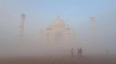 कोहरे में छिपा ताजमहल, कड़ाके की ठंड जारी, कई जगह विजिबिलिटी शून्य