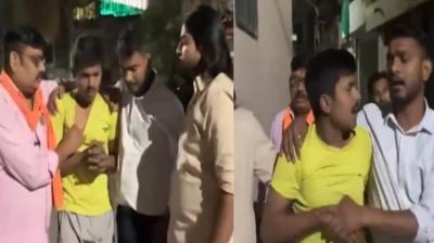 वेद विद्यालय में शिक्षक की पिटाई, छात्र को छड़ी से पीटा; CCTV में कैद