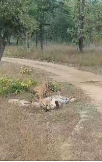 Sidhi। मध्य प्रदेश में एक बार फिर प्रकृति का एक अनोखा और दिल को छू लेने वाला दृश्य सामने आया है। गुरुवार सुबह करीब 10 बजे, बाघिन T28 जिसे 'मौसी' के नाम से जाना जाता है, अपने चार शावकों से दोबारा मिल गई। जिसका वीडियो सोशल मीडिया पर तेजी से वायरल हो रहा है।