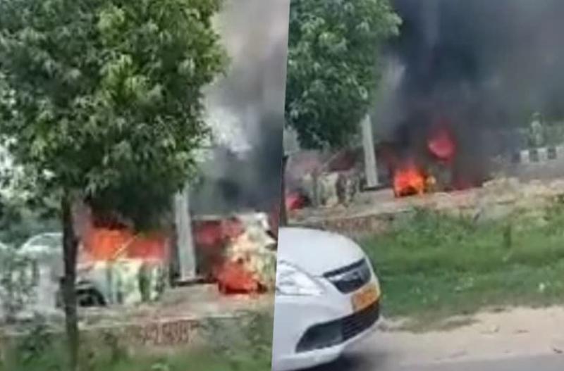 नोएडा सेक्टर-63: मारुति सर्विस सेंटर में भीषण आग, 7-8 गाड़ियां खाक