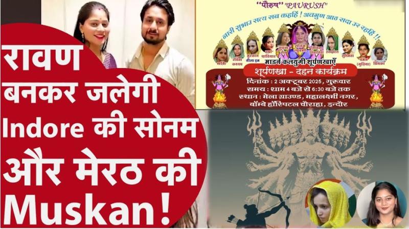 इंदौर: इस बार विजयादशमी पर शहर में एक अलग ही तरह का पुतला दहन देखने को मिलेगा। इंदौर की संस्था पौरुष ने दशहरे पर रावण की जगह 11 मुखी शूर्पणखा का पुतला जलाने का फैसला किया है। खास बात यह है कि इस पुतले पर उन 11 महिलाओं की तस्वीरें होंगी, जिन्होंने अपने पति या बच्चों की हत्या जैसे गंभीर अपराध किए हैं। इनमें सबसे चर्चित नाम सोनम रघुवंशी और मुस्कान का है। राजा रघुवंशी हत्याकांड ने पूरे प्रदेश को हिला कर रख दिया था। इंदौर के ट्रांसपोर्ट कारोबारी राजा रघुवंशी की शिलांग में हनीमून के दौरान पत्नी सोनम ने अपने प्रेमी और साथियों के साथ मिलकर बेरहमी से हत्या कर दी थी। वहीं, मुस्कान नाम की महिला ने अपने पति की हत्या कर उसकी लाश नीले ड्रम में छुपा दी थी। ऐसे कई मामले देशभर में सामने आए हैं, जहां शादी के बाद पुरुषों की सुरक्षा पर गंभीर सवाल खड़े हुए हैं।