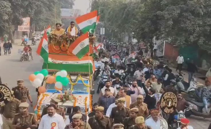 आगरा: आगरा आगमन पर विश्वकप विजेता क्रिकेटर दीप्ति शर्मा का भव्य स्वागत किया गया। कमिश्नरेट पुलिस ने सुरक्षा के कड़े इंतजाम किए। रोड शो में यातायात बाधा न बने, इसके लिए अन्य वाहनों के रूट डायवर्ट किए गए।
