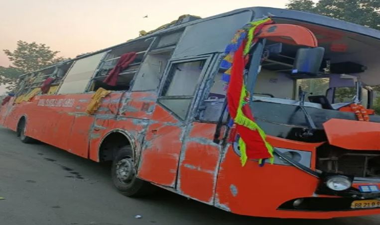 बस डिवाइडर से टकराते हुए पलट गई