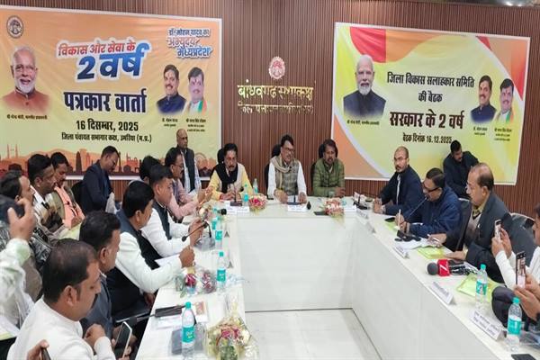 भोपाल : अनुसूचित जाति कल्याण मंत्री एवं उमरिया जिले के प्रभारी मंत्री नागर सिंह चौहान ने कहा है कि मुख्यमंत्री डॉ. यादव के नेतृत्व में प्रदेश ने पिछले दो वर्षों में विकास की नई ऊँचाइयाँ छुई हैं। प्रदेश सरकार द्वारा मप्र के विभिन्न जिलों में रीजनल इंडस्ट्रियल कॉन्क्लेव आयोजित कर उद्योगपतियों को आमंत्रित किया गया। प्रदेश में निवेश प्रस्ताव प्राप्त हुए है। गरीब कल्याण के लिए गरीब कल्याण मिशन प्रारंभ किया गया। अधोसंरचना विकास के तहत प्रदेश के नगरों एवं ग्रामीण क्षेत्रों में मुख्यमंत्री सुगम परिवहन सेवा प्रारंभ की गई। मुख्यमंत्री ग्राम सड़क योजना के तहत 8565 ग्राम सड़कों से जुड़ गये है। मंत्री चौहान उमरिया के जिला पंचायत सभागार में सरकार के दो वर्ष पूर्ण होने पर प्रेसवर्ता को संबोधित कर रहे थे।